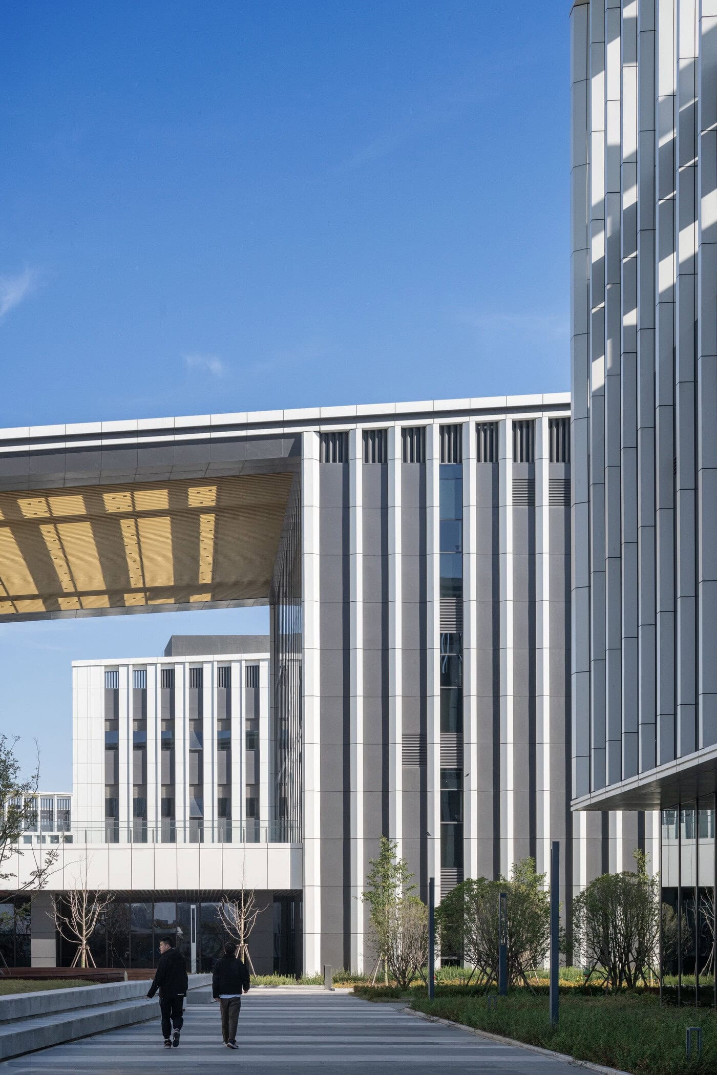 ファサードには、機能的な自然換気と採光の要素を取り入れ、白い縦ルーバーが日射遮蔽と視覚的整理の役割を果たしている。これにより、内部における研究開発プロセスの差異による複雑さを外観に持ち込まず、統一された印象を保っている。最終的に、産業性・技術性・人間性が調和した空間となり、豊かな階層性を持つ構成は、医薬品研究キャンパスとしての長期的なアイデンティティを確立している。