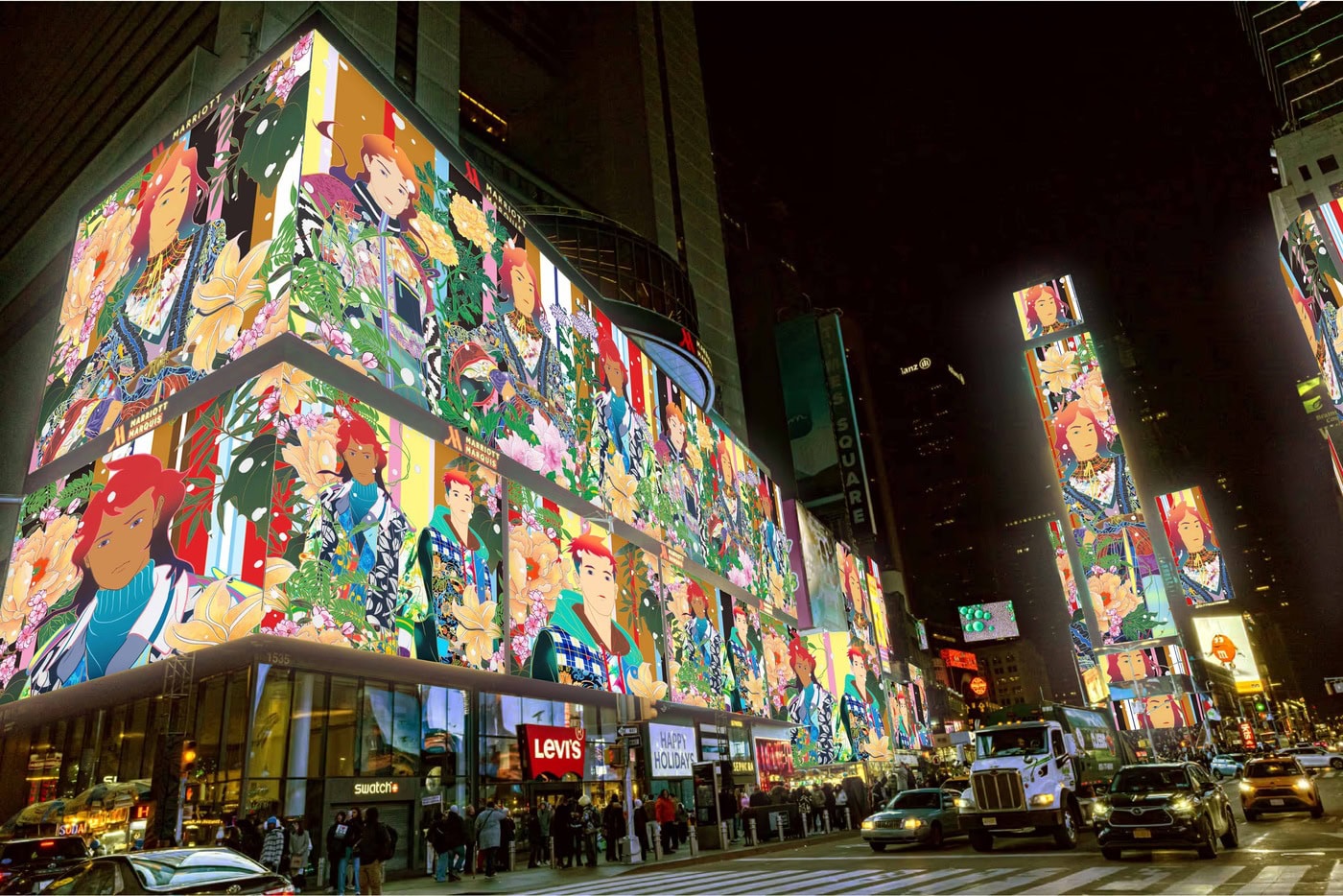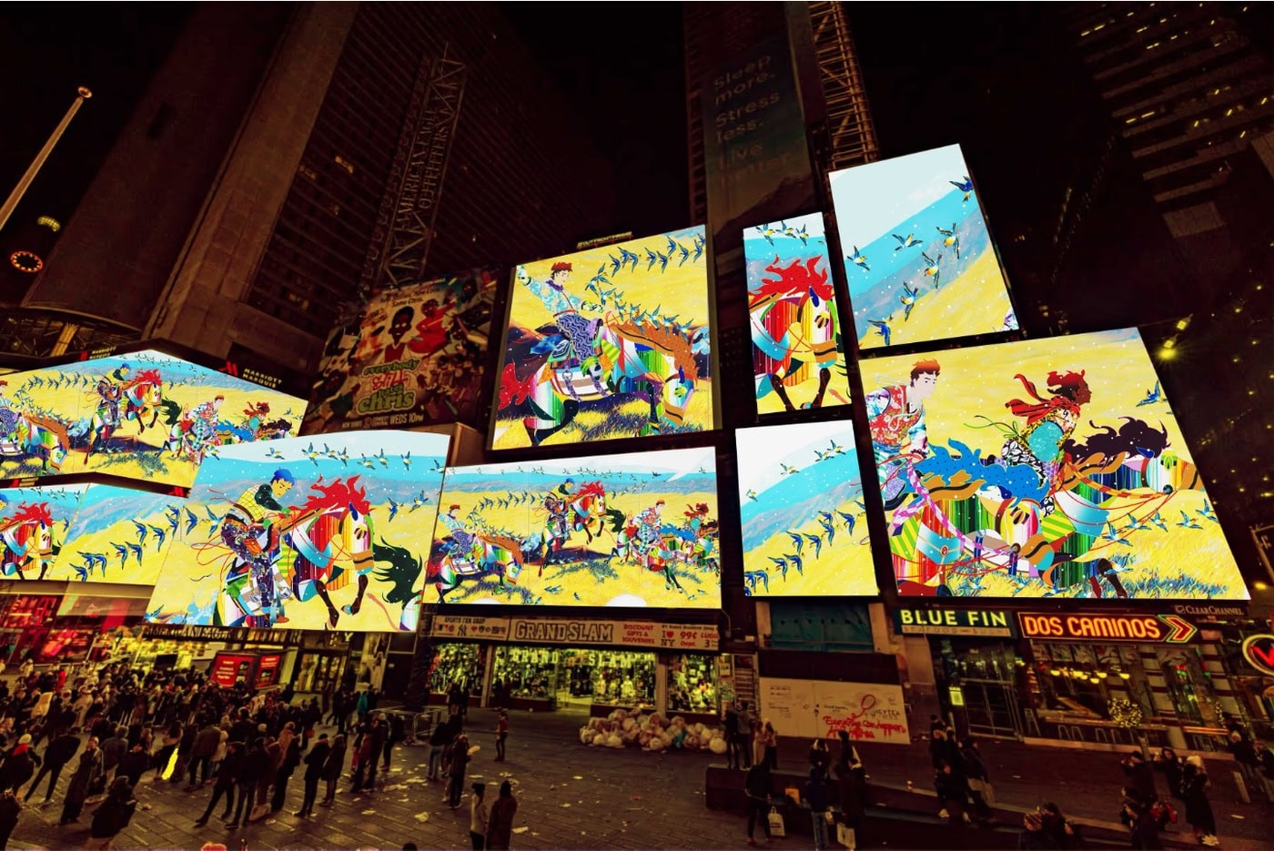 上映の舞台となるタイムズスクエアは、歴史や文化、多様なアイデンティティが交差する都市空間である。巨大スクリーンをキャンバスとして、光や色彩、動きが都市の鼓動と呼応する映像体験が展開される。鑑賞者は都市の中心で立ち止まり、目の前に展開するイメージを通して変化し続ける都市のリズムを体感する。移民の歴史と多様な文化が共存するニューヨークのエネルギーが、光と動きによって可視化される作品となる。