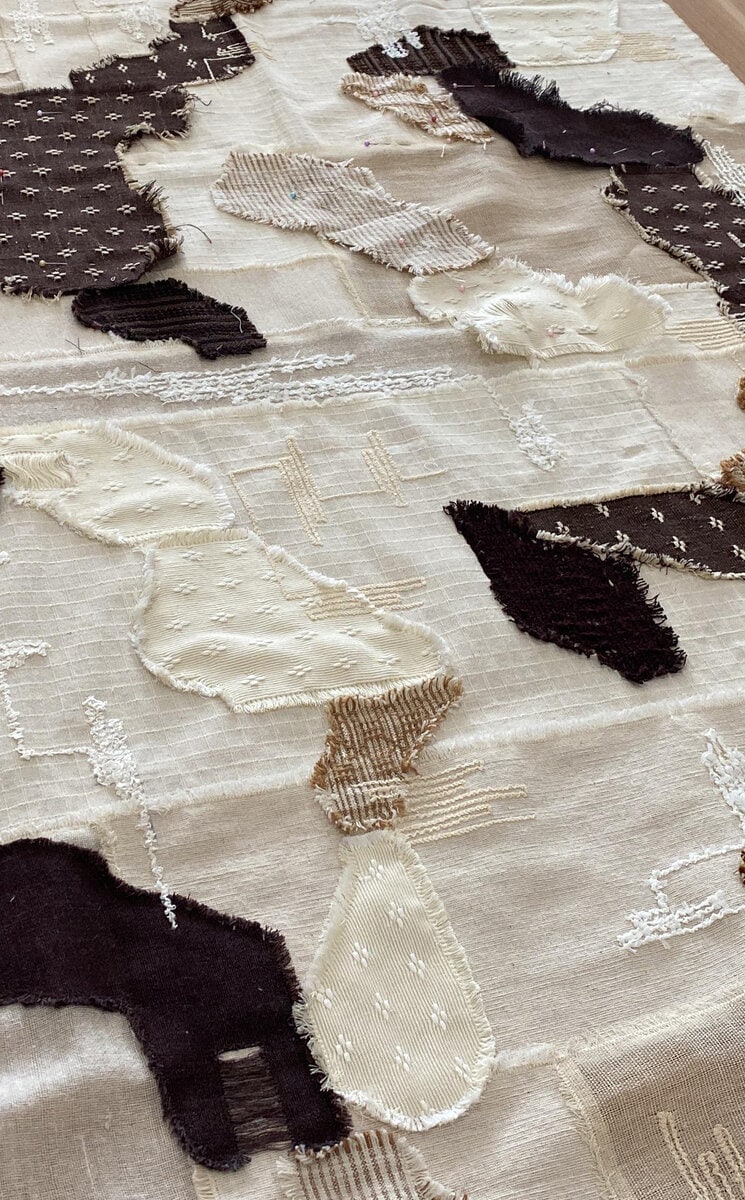 2015年にHana Suryaによって設立され現在7名の職人とデザイナーで構成されるテキスタイルアートスタジオ。ジャカルタの縫製職人の技術と芸術性を大切にしている。すべてのプロジェクトは、地元のアパレル産業から回収された布の端材を集めることから始まり、それぞれのタペストリーが唯一無二の作品となっている。