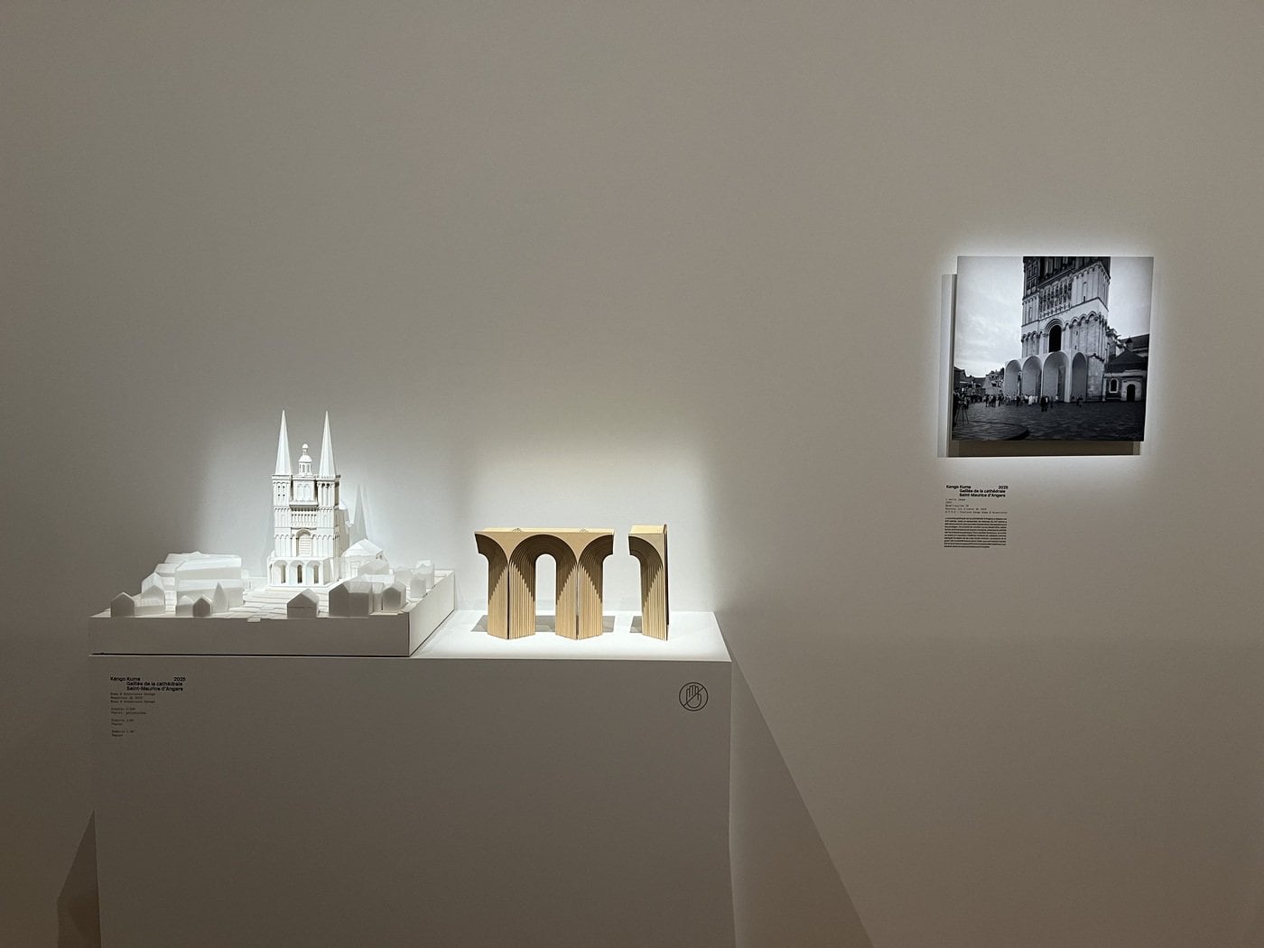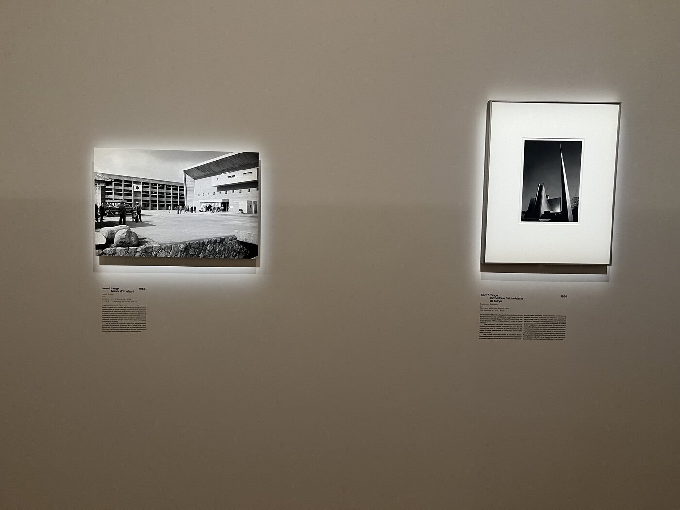 Finally, the last room of the exhibition explores the connections between Tange, Kuma and France, the country where the exhibition is being held. Western architecture and art owe a profound debt to Japanese culture: the journeys to Japan undertaken by Bruno Taut and Charlotte Perriand, the previously mentioned influence of Katsura on Gropius, the impact of the Ho-o-den on Frank Lloyd Wright, and the impact of ukiyo-e on Impressionist and Art Nouveau aesthetics all bear witness of this exchange. Conversely, the dialogue between France and Japan flowed in both directions, with many Japanese architects travelling to France to study its rich architectural tradition, including Tange's mentor, Hideto Kishida, as well as Kunio Maekawa and Junzō Sakakura. The room that closes the exhibition exhibits letters, photographs and furnishings that demonstrate the intensity of the infinite solicitations of this planetary exchange. It also highlights Kuma's work in France, with photographs and models of his projects on display. Notable examples include the Albert Kahn Museum, which fosters a renewed dialogue between architecture and landscape, and the under-construction Saint Denis Pleyel metro station, a new urban centrality in a wounded urban tissue, contributing to its healing and regeneration.