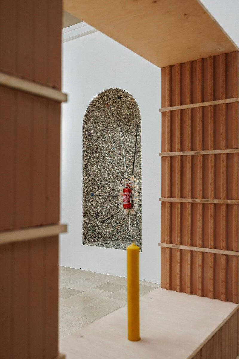 - The exhibition at the Polish Pavilion reflects on the continuity between ancient rituals and contemporary safety practices—where lighting a blessed beeswax candle and framing a fire extinguisher are gestures driven by the same human need for protection Photo credit: Jacopo Salvi, Zachęta archive