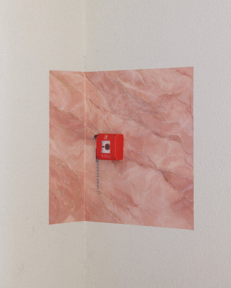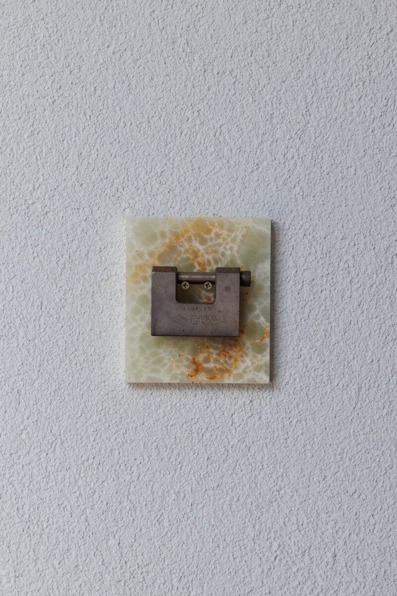 At the same time, the exhibition draws attention to safety features and infrastructure aligned with contemporary regulations, such as the emergency exit or the fire alarm. These elements, already part of the Pavilion's architecture, are framed and highlighted as part of the display. Also included are peepholes, alarm systems, and padlocks—devices through which we watch and protect, often unseen.