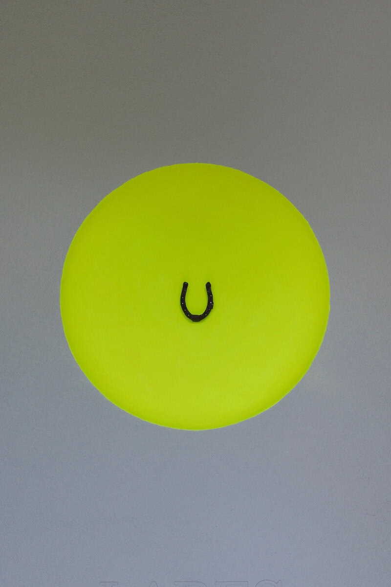 A found horseshoe, hung in a ‘U’ shape to keep luck from spilling out—presented here as part of an open-ended dialogue, without judgment, between ritual gestures, living myths, safety regulations, and emotional needs