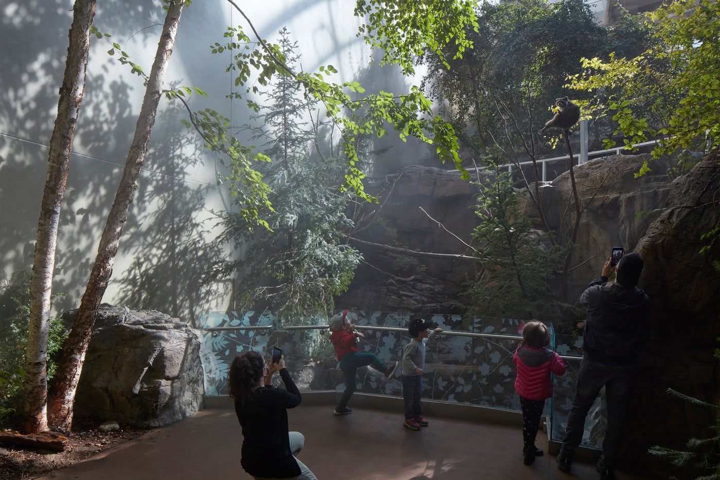 Before designing a new water basin for the facility’s resident penguins, KANVA staff spent weeks with biologists and veterinarians in order to gain insight into the specie’s swimming patterns. To provide an authentic feel to an observation point where visitors can observe beavers in their natural habitat, the firm studied the architectural prowess of the beavers. The idea emerged to let the beavers carve the wood themselves, which was then dried and used to line the interior of the space.