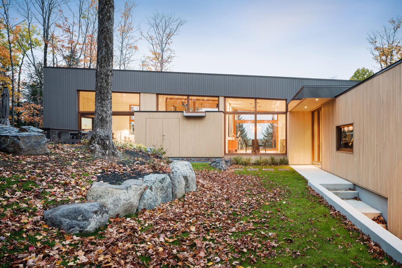 The Hauts-Bois House, designed by Montreal-based architecture firm Thellend Fortin Architectes, is a second home nestled in the Laurentian forest of Canada. Its simple geometrical composition highlights the beauty of the surrounding landscape.