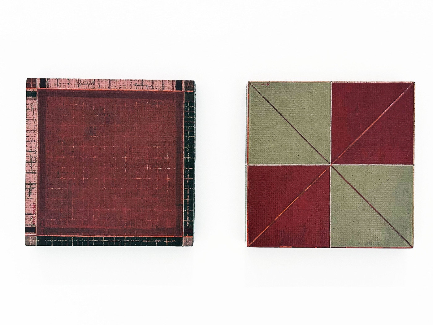 07. Qiao Jia, Handkerchief Series-Territory, Handkerchief Series-Red Knitting, 2021, Wood, Linen, Lacquer 30cmx30cm×5cm.