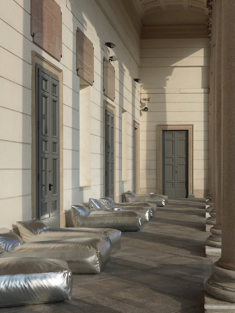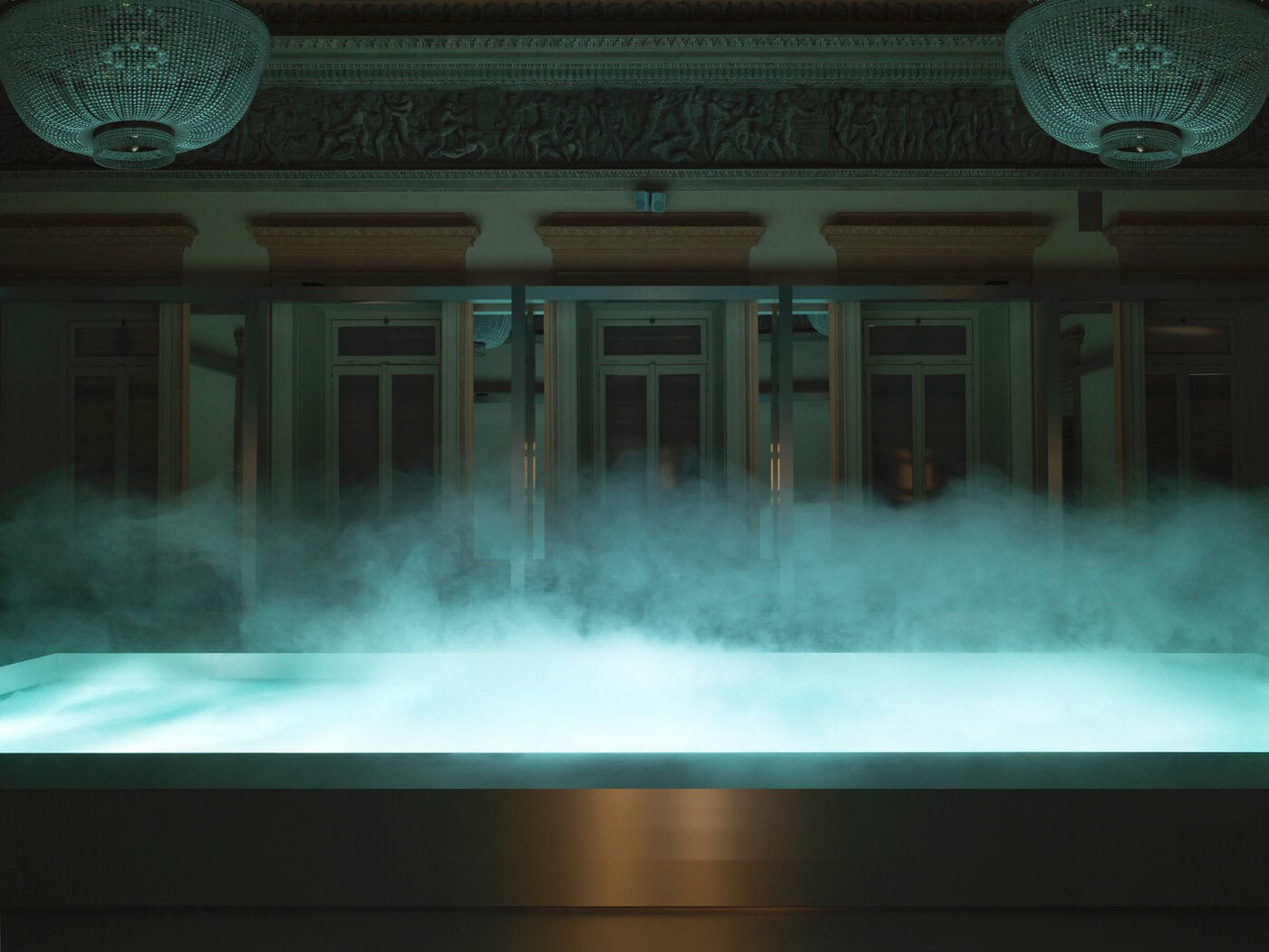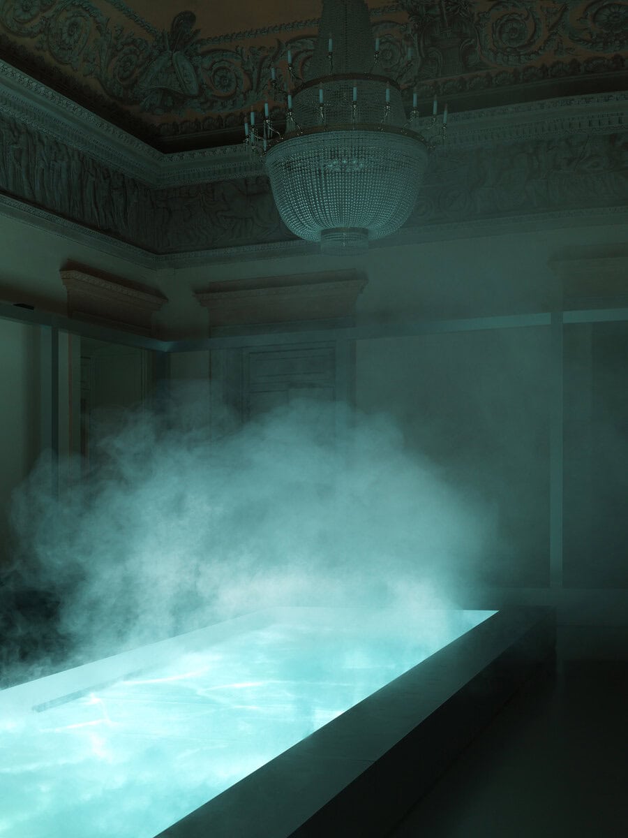 本インスタレーションは古代ローマのテルマエの空間的・社会的な構造をもとに、現代におけるリトリートとして再解釈したもの。視覚的な演出に重きを置くのではなく、知覚を落ち着かせ、意識を整えていくための一連の空間で構成されている。