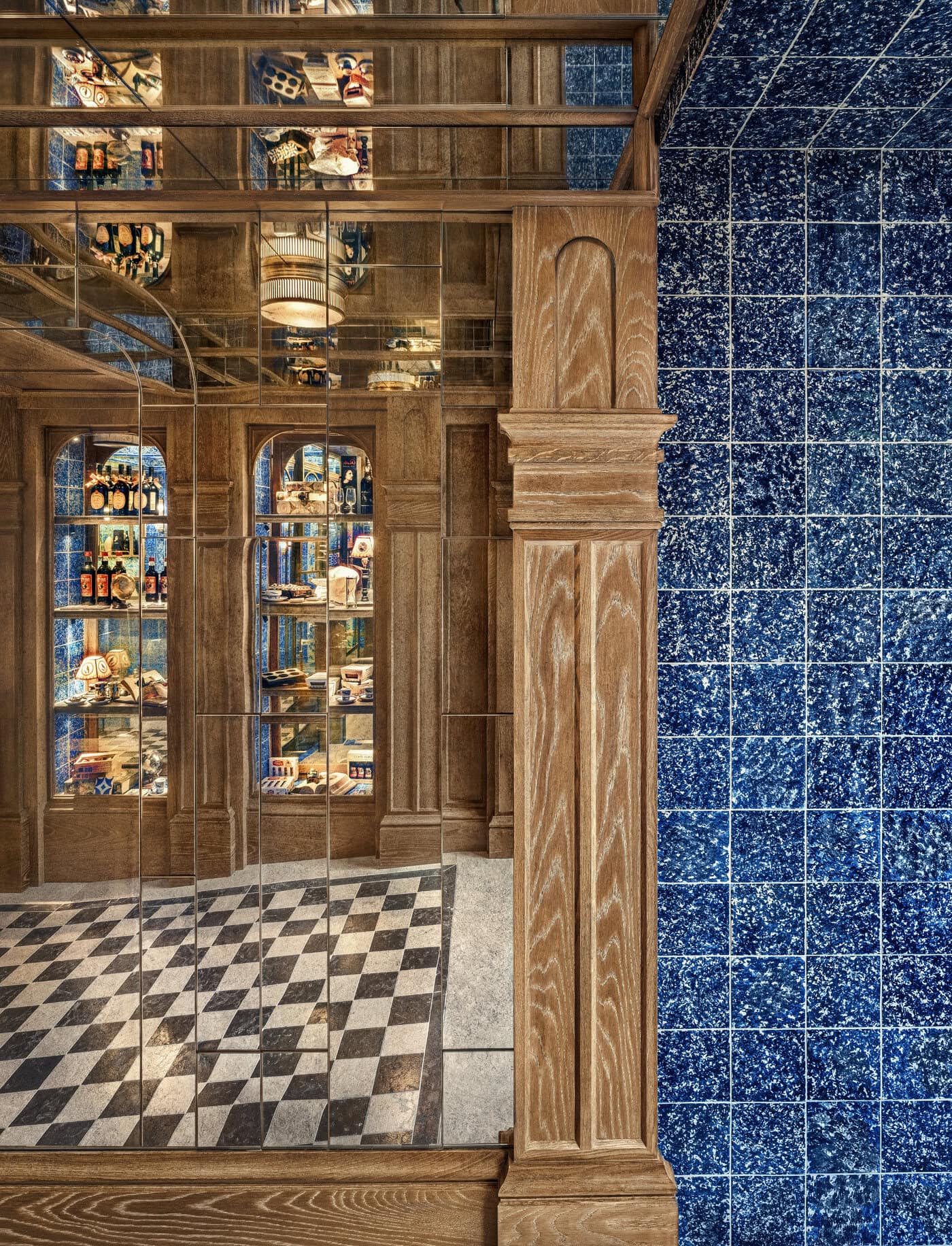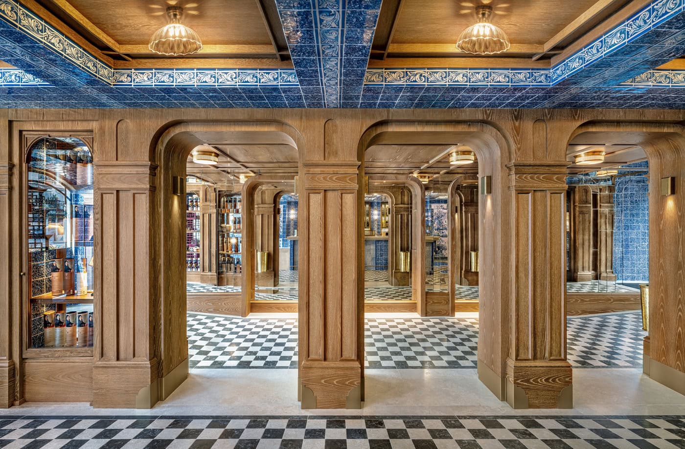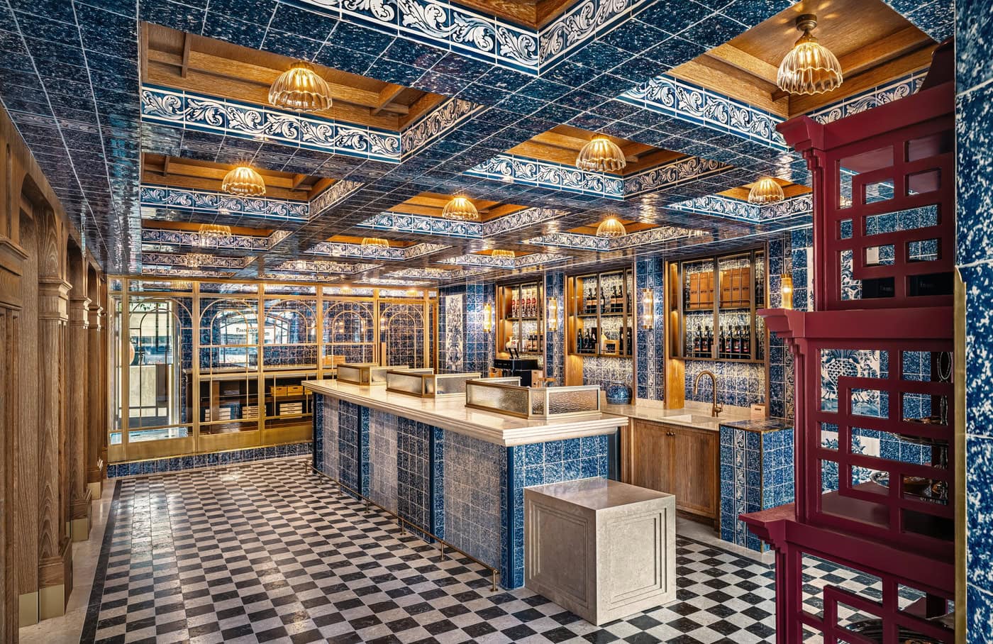 The design builds a subtle yet impactful dialogue between eras—connecting the charm of the past with the creative energy of the present. Every element in the space reflects attention to detail: custom-designed counters and shelves combine functionality with elegance, while discreet brass accents add a layer of refinement without overpowering the natural materials. The brand’s iconic blue and white palette is reimagined in modern textures and patterns, maintaining the essence of the original while revealing a refreshed identity.