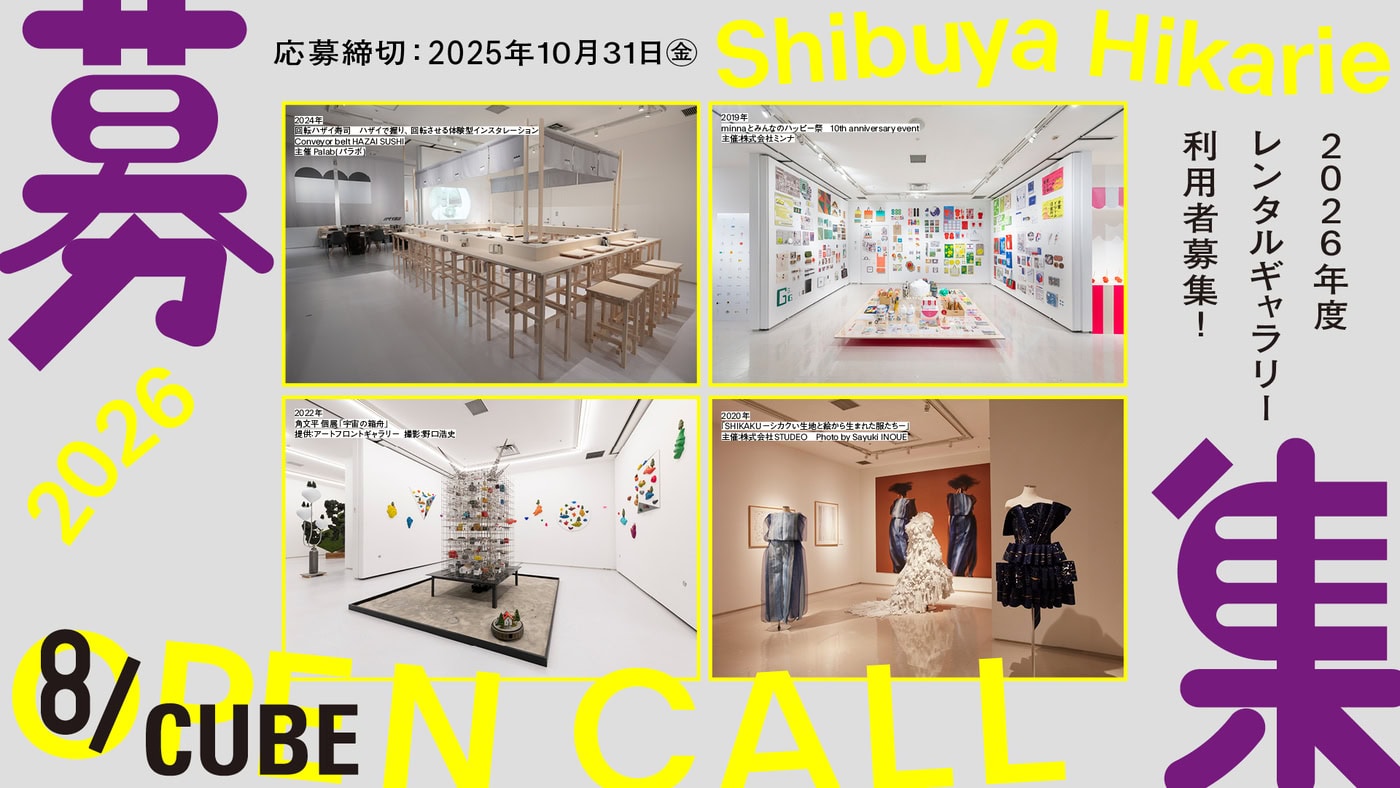 高層複合施設・渋谷ヒカリエ8階「Creative Space 8/」に位置するレンタルギャラリースペース「8/CUBE」が、2026年度の展覧会の公募を開始した。集まった企画書をもとに8/コミッティが審査、利用者を決定する。利用期間は2026年4月〜2027年3月、募集期間一覧は公式サイトから確認できる。専用フォームより第3希望の会期まで入力して申込み。応募締切は2025年10月31日(金)、結果通知は11月下旬を予定している。
